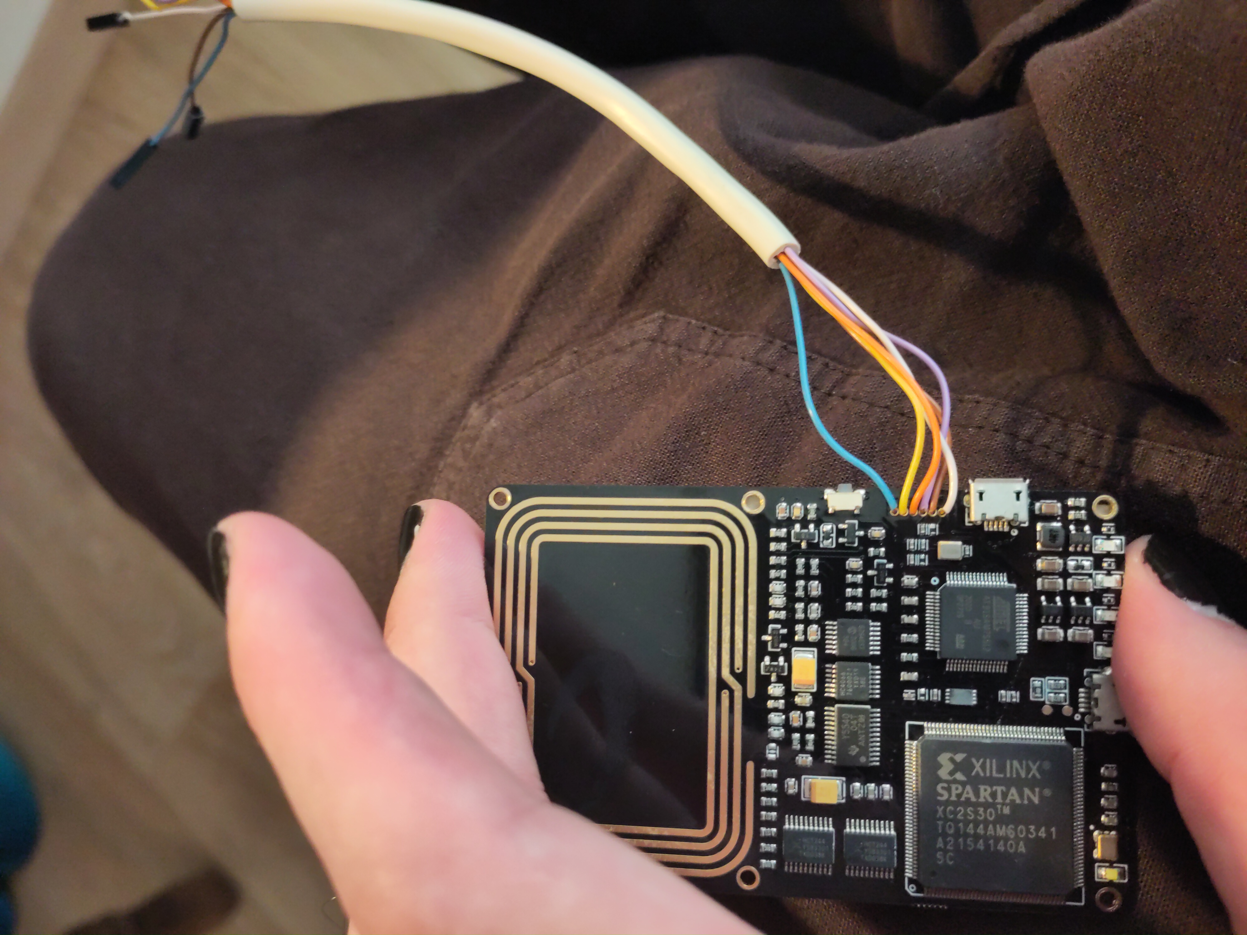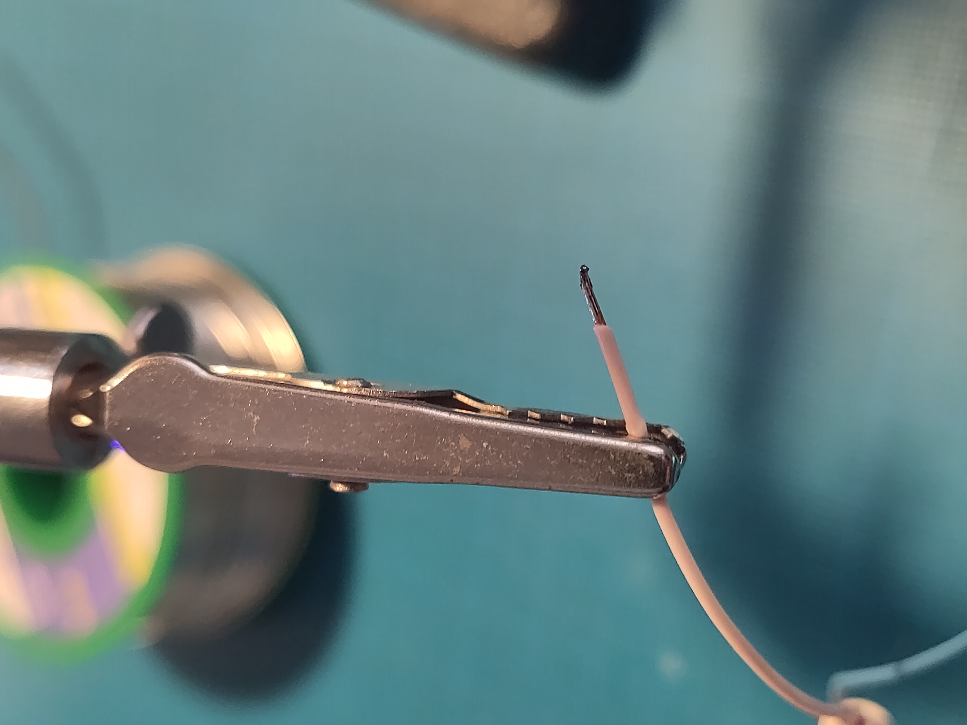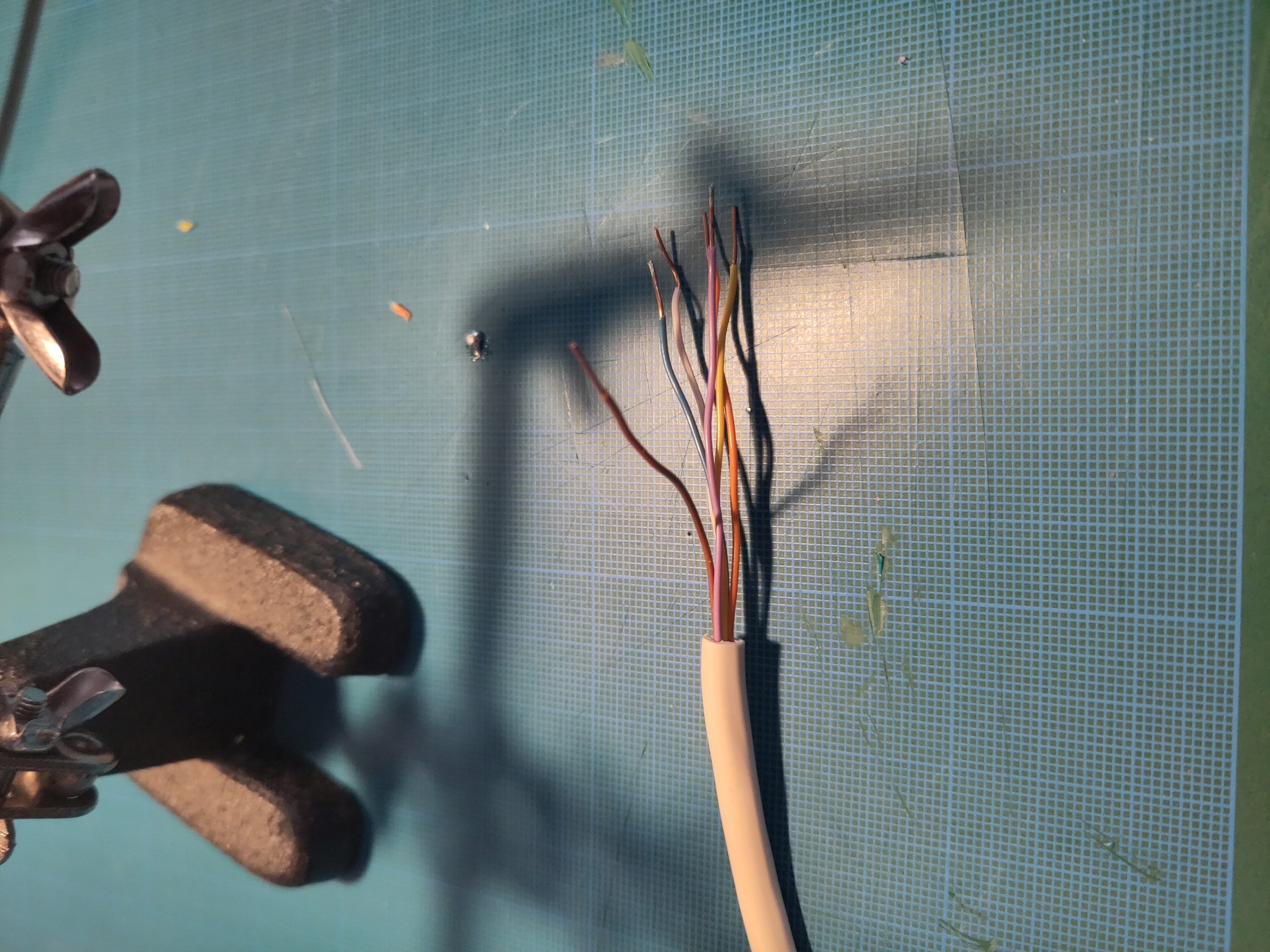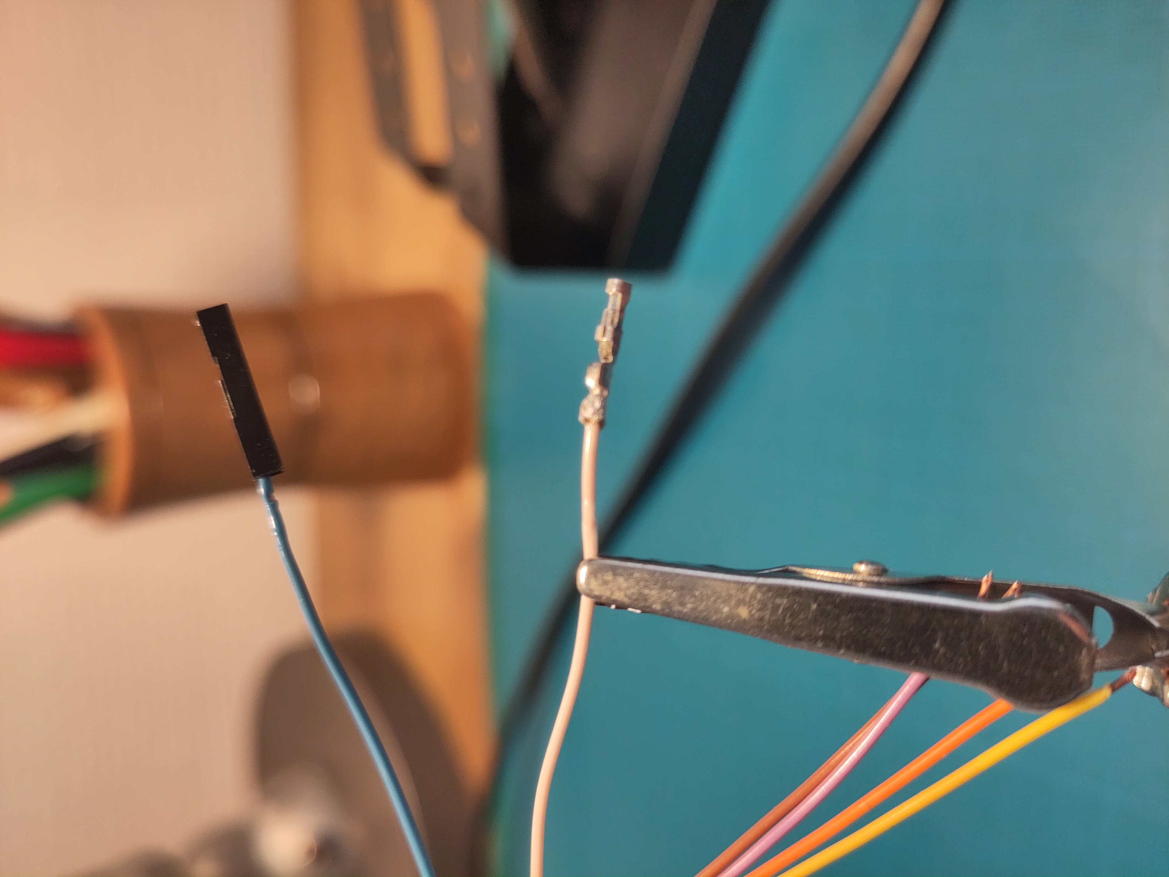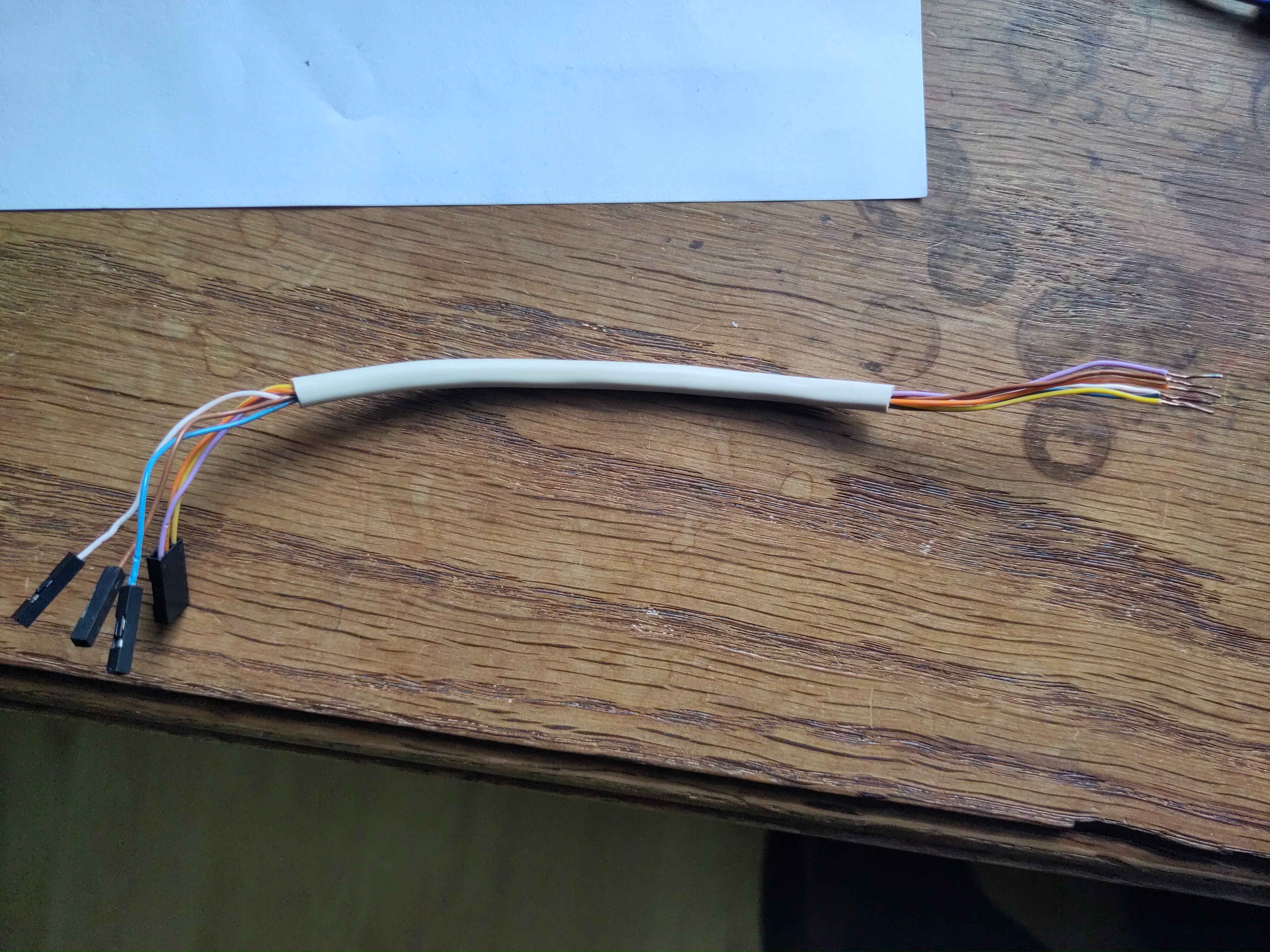 On to the next problem: my female/male wires are slightly too thick for the JTAG ports on the proxmark (I believe normal male jumper wire would work, I just have weird wires). However I had this nice phone wires that are juste the right size. Even better, there is just the right number of wire in sheath.