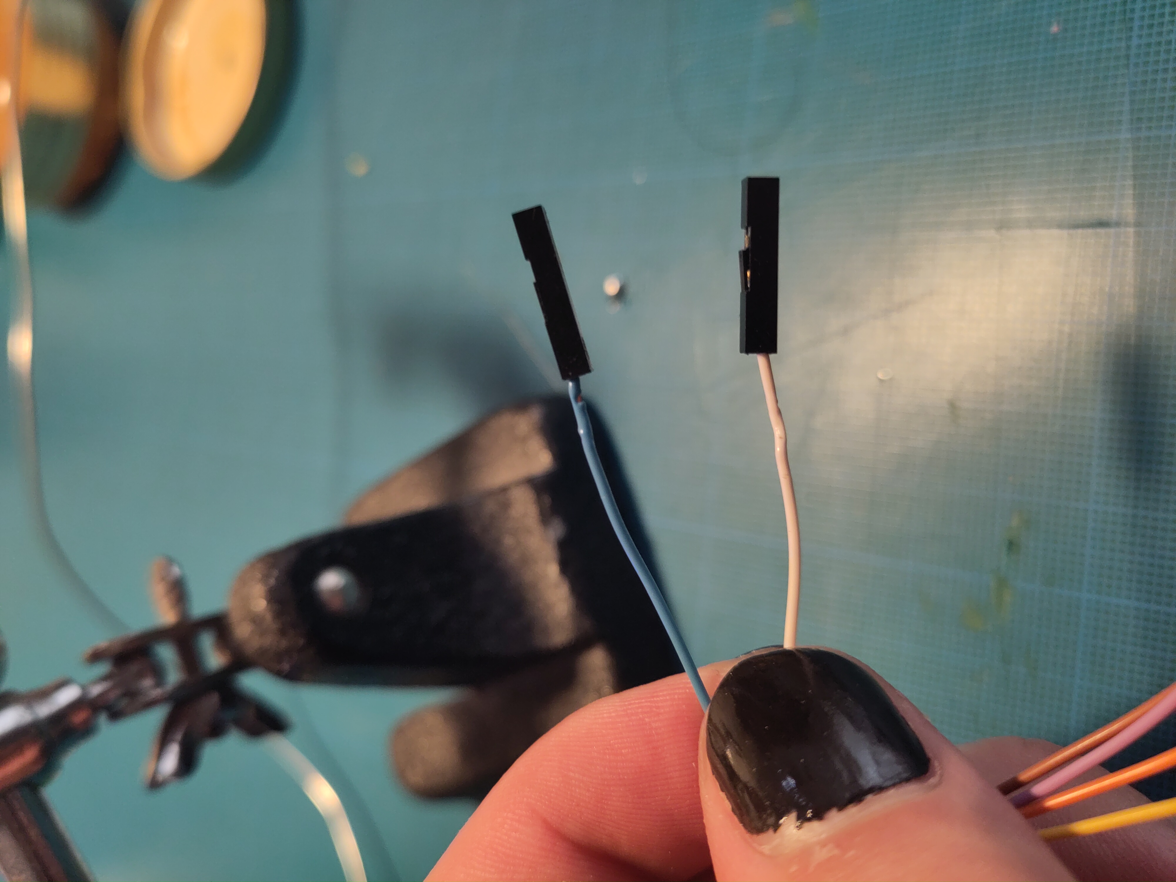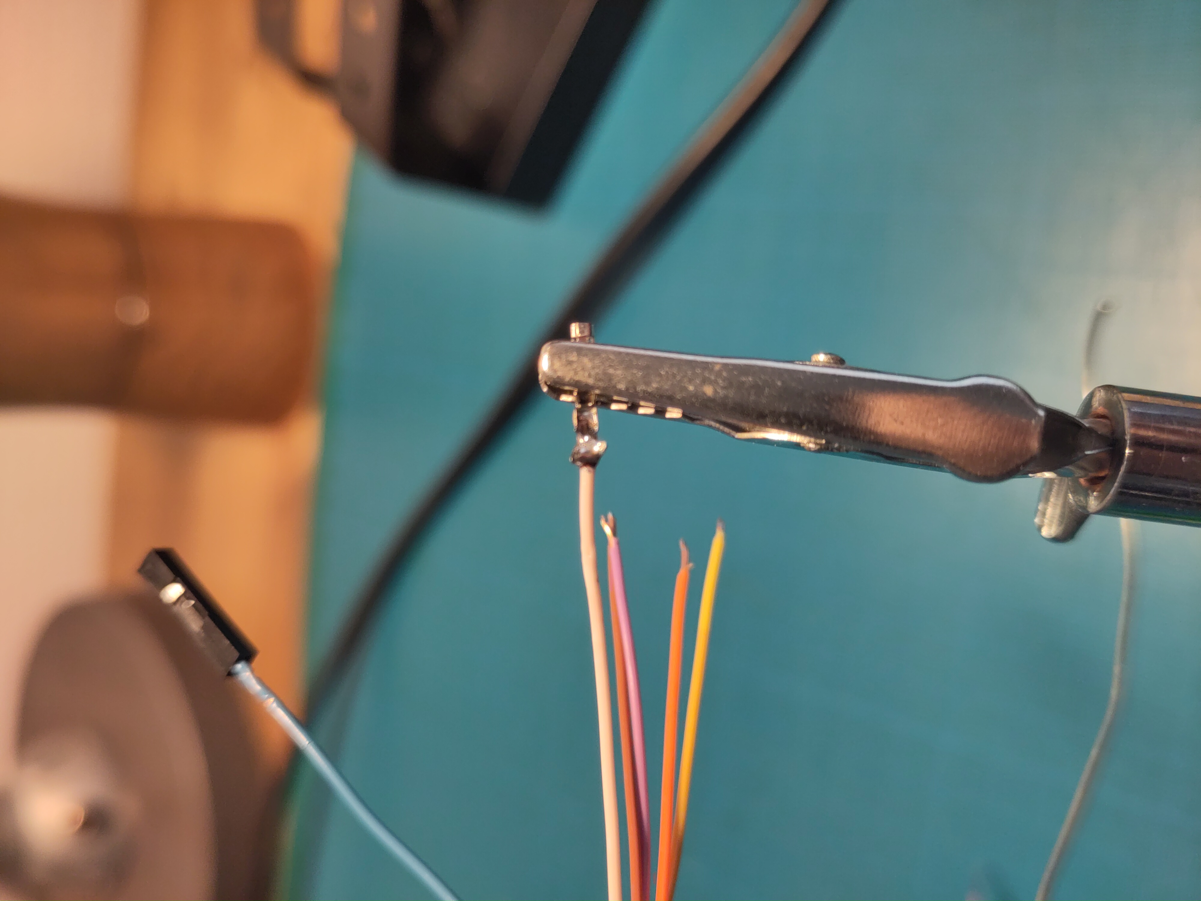Unfortunately, my raspberry has mal connectors, not really compatible with bare wires. Fortunately, I had some DuPont headers waiting to be used. Soldering time!